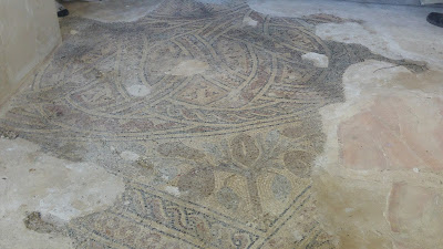 والإهمال، هذه الفسيفساء تضم زخارف ونخيل وأشكال هندسية على النمط الإسلامي.